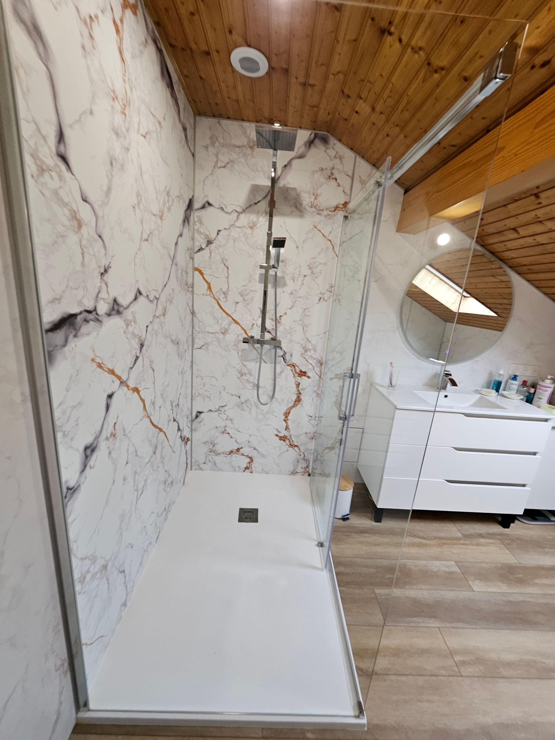 Nous pouvons alors intervenir sur la création ou la modification d’espaces, la pose de cloisons, le réaménagement ou réagencement d’une cuisine ou salle de bain, la création d’ouvertures (cloison, mur porteur), la pose de menuiserie (porte coulissante, fenêtre, œil-de-bœuf, volet), la création de rangements adaptés à vos espaces, votre dressing ouvert, etc.